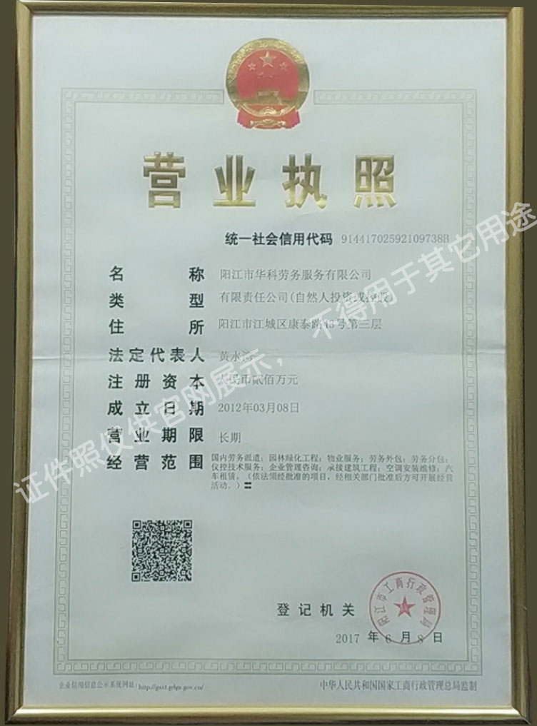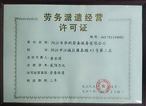 華科勞務服務有限公司是專業從事人事代理、勞務租賃、人力派遣及管理的綜合性服務機構,是首批獲得廣東省人力資源廳、陽江市勞動和社會保障局頒發人力資源許可證的合法單位。公司秉承“誠信務實、專業熱情、滿意第一、服務社群”的經營理念,在勞務派遣業務的基礎上,更致力于合同制工人(臨時工、實習生、假期工)方向發展,為用工企業及時輸送合格的各類人才,合理調配人力資源的有序流動,幫助求職者尋求更加滿意的就業渠道和崗位,切實維護求職者的合法權益。